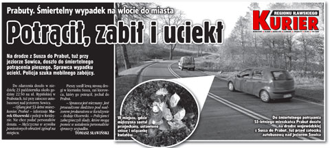 Na drodze wlotowej do Prabut od strony Susza – tuż przy jeziorze Sowica – po zapadnięciu zmroku doszło do śmiertelnego potrącenia pieszego. Sprawca uciekł. Policja szuka tchórzliwego zabójcy.